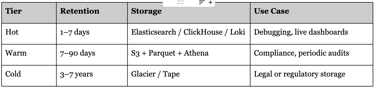 3) Storage Layer: Hot + Warm + Cold