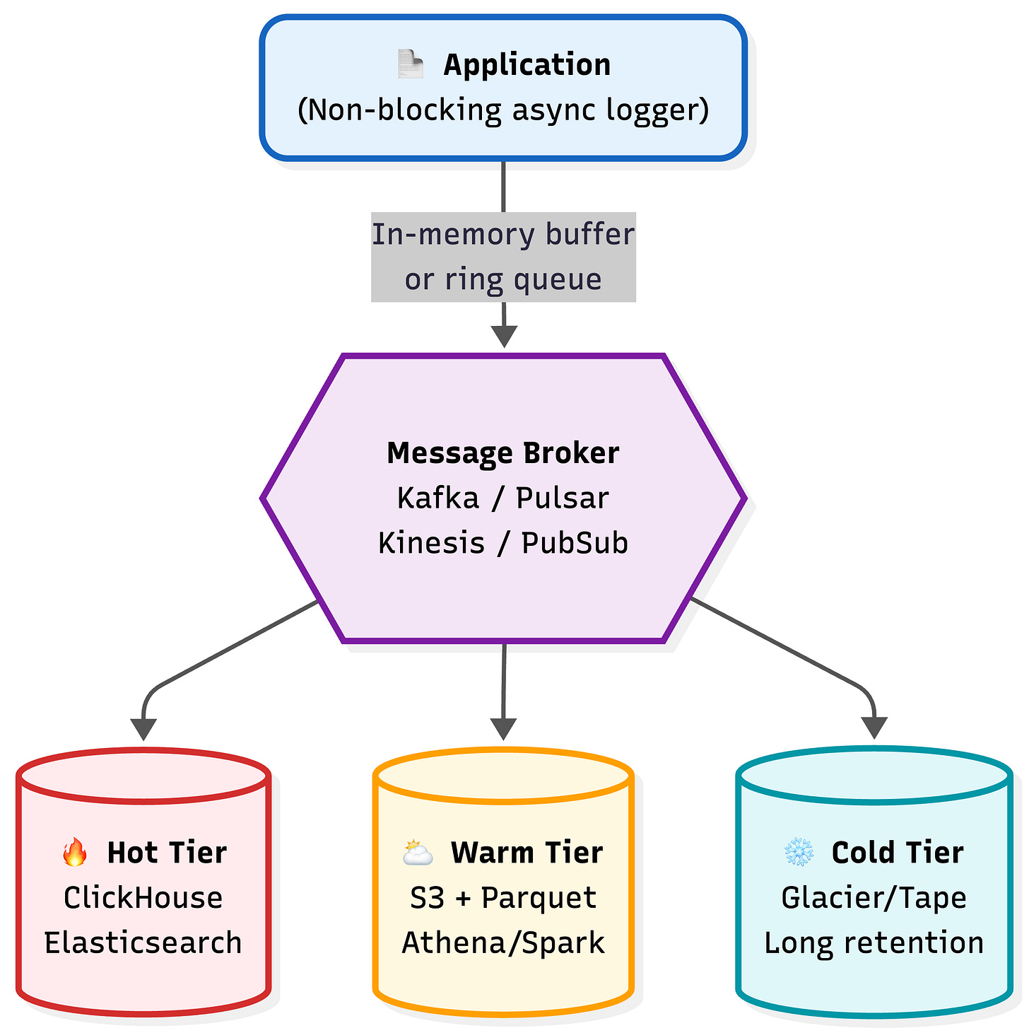 This architecture works because logging no longer stands in the way of real work.